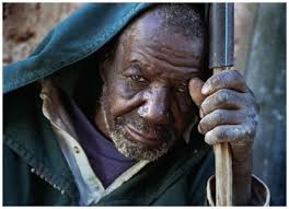 Que numa briga deixou este mendigo tão ferido !